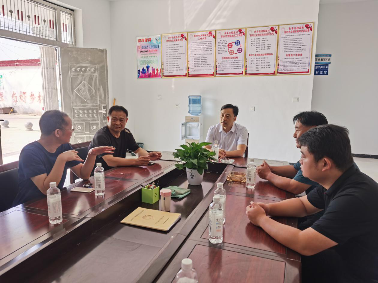 在駐村“第一書記”的陪同下,祝傳隨一行首先與永豐街道辦事處有關(guān)領(lǐng)導(dǎo)、程莊村委會(huì)成員進(jìn)行了座談,了解幫包村發(fā)展現(xiàn)狀和存在的實(shí)際困難,商討下步發(fā)展計(jì)劃。