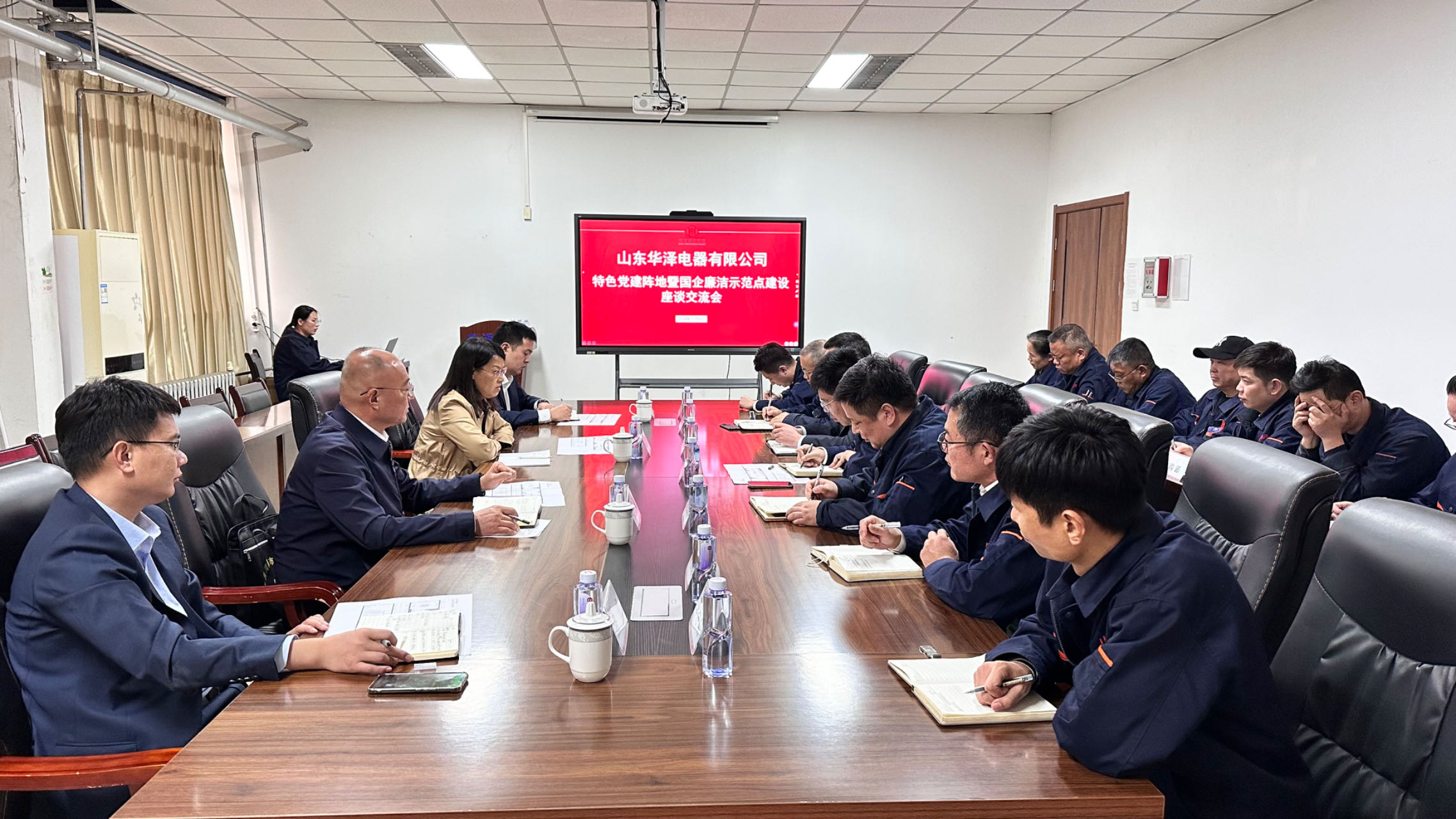 調(diào)研組一行實地參觀了華澤電器公司新辦公區(qū)域及生產(chǎn)車間,詳細了解公司黨建陣地、清廉國企建設(shè)情況及車間設(shè)備技改投入情況,并就抓好當前和今后清廉國企建設(shè)等工作進行座談交流。