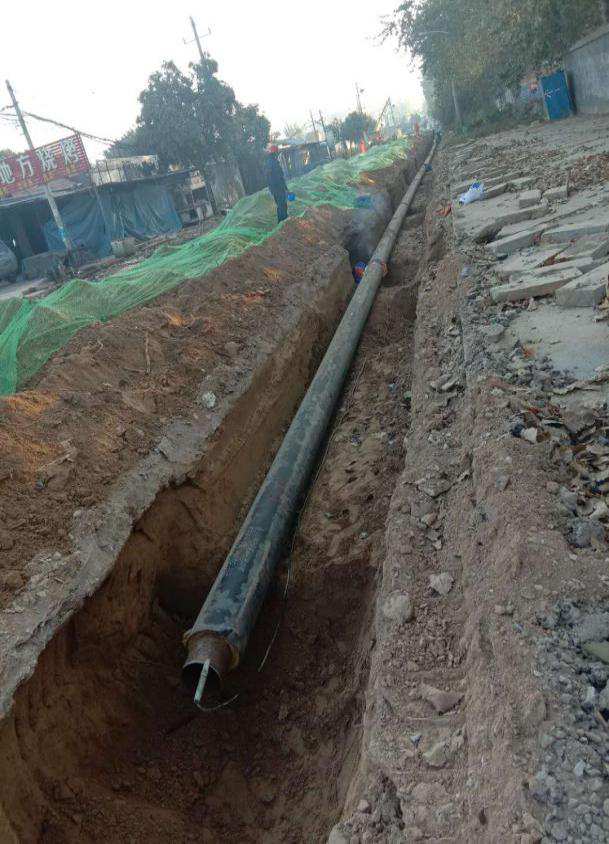 為了能夠讓電廠家屬院能夠在供暖季正常用暖,公司對該項(xiàng)目工地實(shí)行分段施工,分班次、加班加點(diǎn)搶工期。10月上旬完成了電廠北門溝槽的開挖工作,10月16日起,開始向溝槽下放熱力管道。